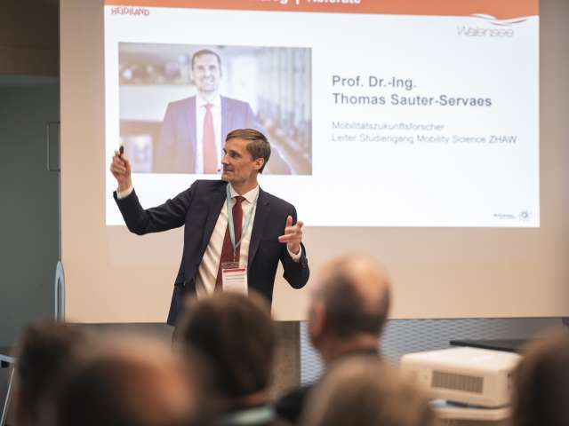 Mit verblüffenden und zugleich unterhaltsamen Fakten schaffte Thomas Sauter-Serveas, Zukunftsmobilitätsforscher und Studiengangsleiter Mobility Science der ZAHW, in seinem Referat für einen packenden Einstieg ins Thema. Er beleuchtete die Entwicklung der Mobilität im Hinblick auf unterschiedliche Antriebsarten und autonomes Fahren und zeigte die daraus resultierenden Konsequenzen.