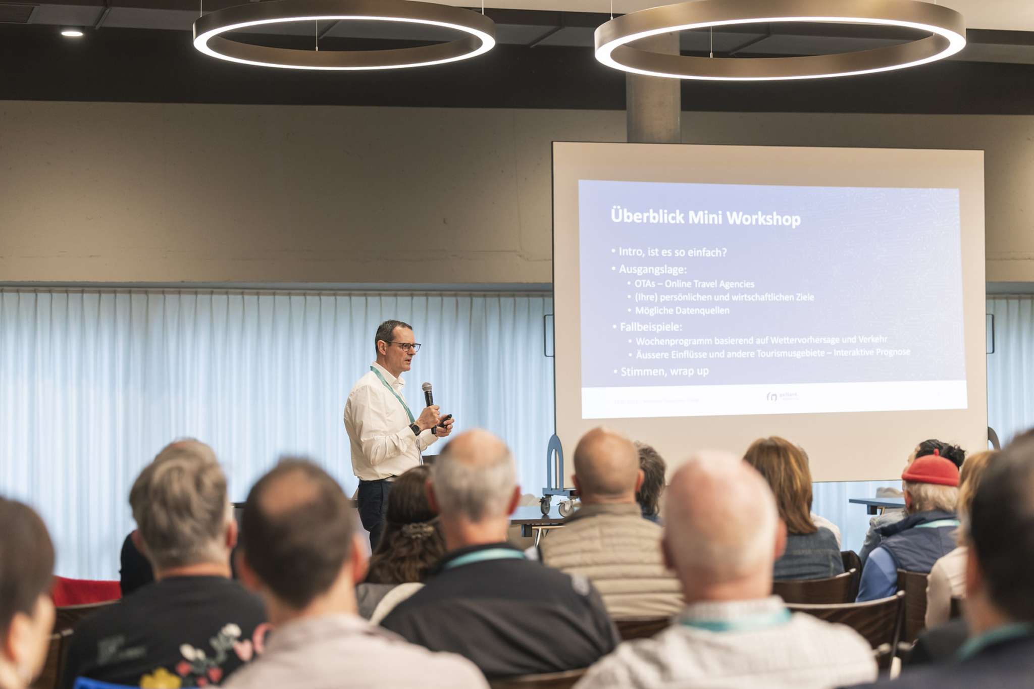 Unter dem Leitthema "Tourismus trifft KI: Chancen erkennen, Potenziale nutzen" stand die transformative Kraft der Künstlichen Intelligenz (KI) im Mittelpunkt des diesjährigen Tourismus Dialogs. Wie verändert KI die Tourismusbranche? Welche Tools sind heute bereits einsatzbereit – und wie gelingt ihre erfolgreiche Integration in den Arbeitsalltag? Diese und weitere Fragen wurden in spannenden Keynotes sowie interaktiven Breakout-Sessions mit praxisnahen Workshops intensiv beleuchtet. Unsere hochkarätigen Referenten – Fabio Aresu, Fabio Gfeller, Dr. Viktor Galliard und Sam Steiner – vermittelten wertvolle Einblicke in KI-Grundlagen, digitale Anwendungen und konkrete Praxisbeispiele aus dem touristischen Umfeld. Ob automatisierte Kommunikation, Unterstützung bei E-Mails und Review-Management oder intelligentes Gästemanagement – der Dialog zeigte deutlich: KI ist längst Realität und bietet Tourismusakteuren vielfältige Chancen zur Prozessoptimierung und Angebotsentwicklung. Mit regen Gesprächen, inspirierenden Impulsen und einem stimmungsvollen Apéro fand der gelungene Nachmittag am Walensee seinen Ausklang.